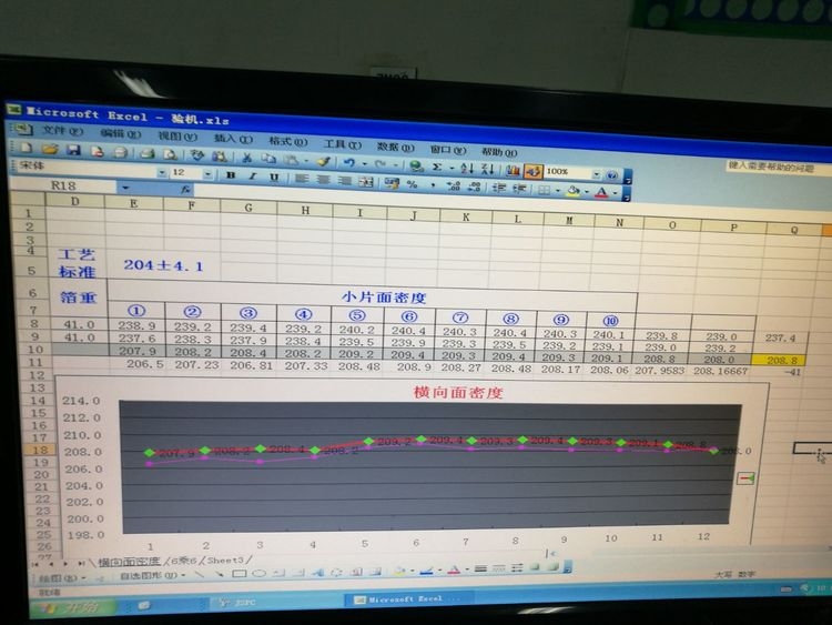 更換墊片為1.0㎜后的首檢頭與中間的面密度對比結果